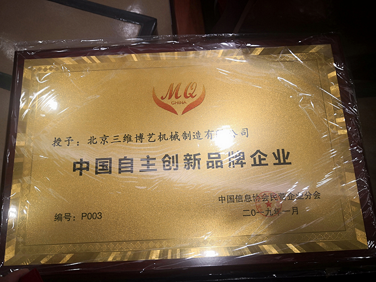 熱烈祝賀北京三維博藝機械制造有限公司2019年1月獲得中國自主創新品牌企業稱號,新的一年有個好的開始,讓我們全體員工擼起袖子加油干,保護好今天擁有的,創造明天想要的。